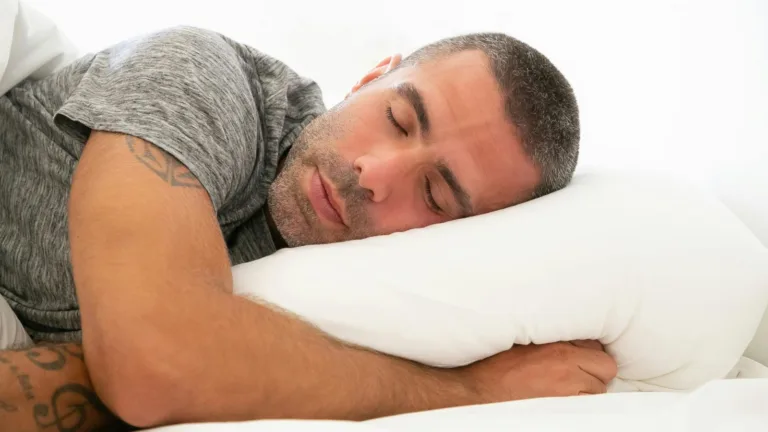 在舒适的卧室中,安详地躺在白色枕头上的男子舒缓地睡着了,放松的男子在床上休息,舒适的睡眠,柔软的床上用品,健康的睡眠环境,幸福,安逸的夜晚,舒适的睡眠环境,睡眠舒适,睡眠卫生,宁静,放松,睡眠健康,舒适的床,睡眠优化。.